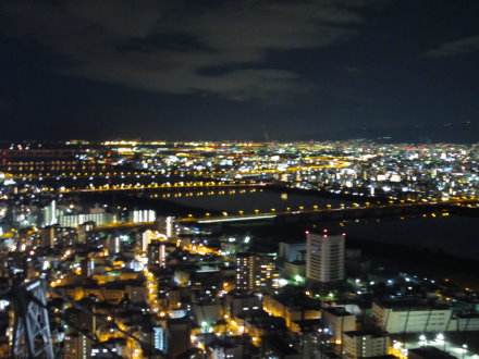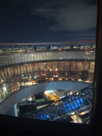 (左:閃亮亮地板! 中:夜景~~ 右:展望台的中間!展望台是圓環狀的,有夠像未來日記)